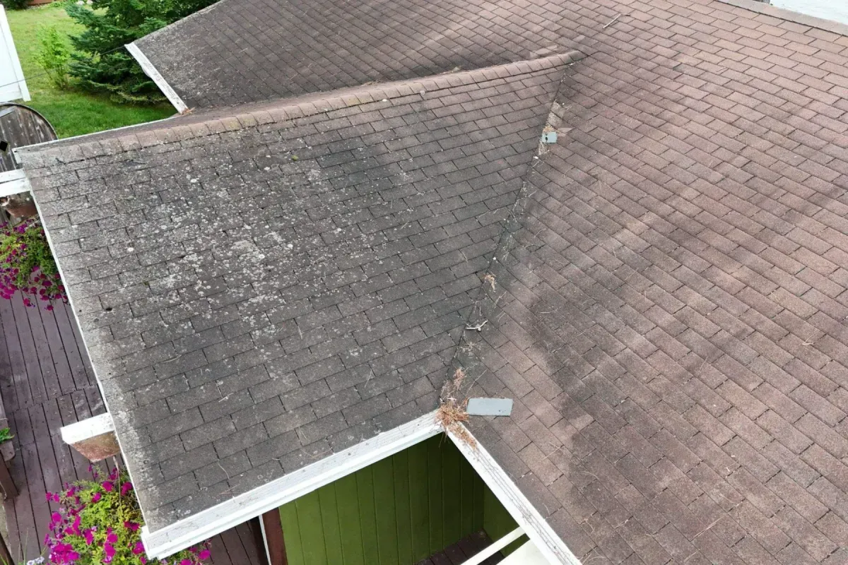 Sun, moisture, and organic buildup gradually weaken shingles, reducing flexibility, strength, and lifespan long before leaks appear.